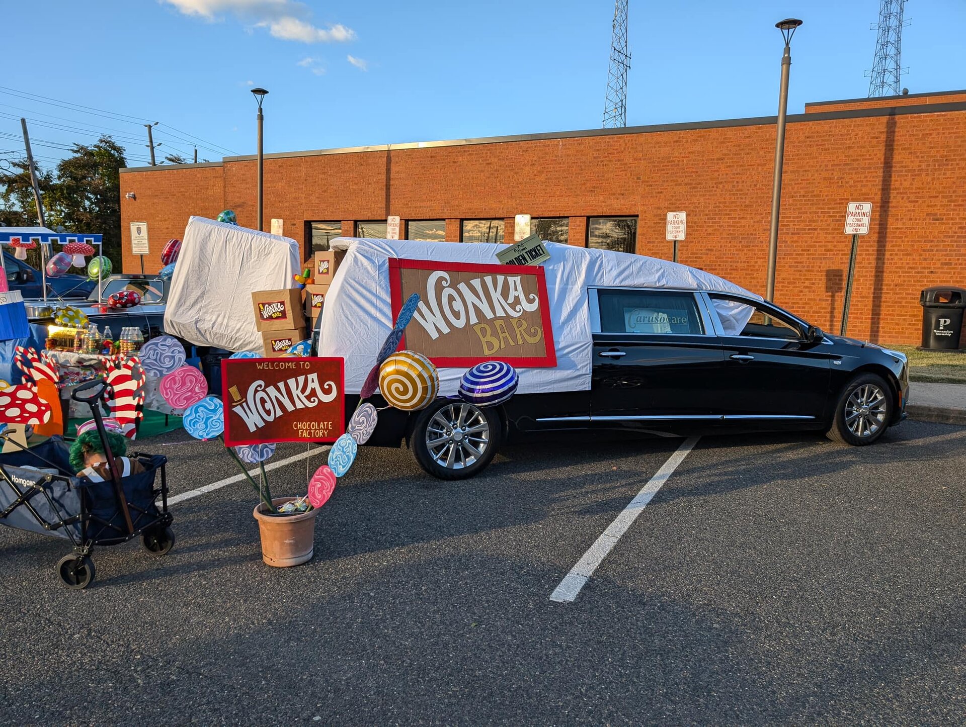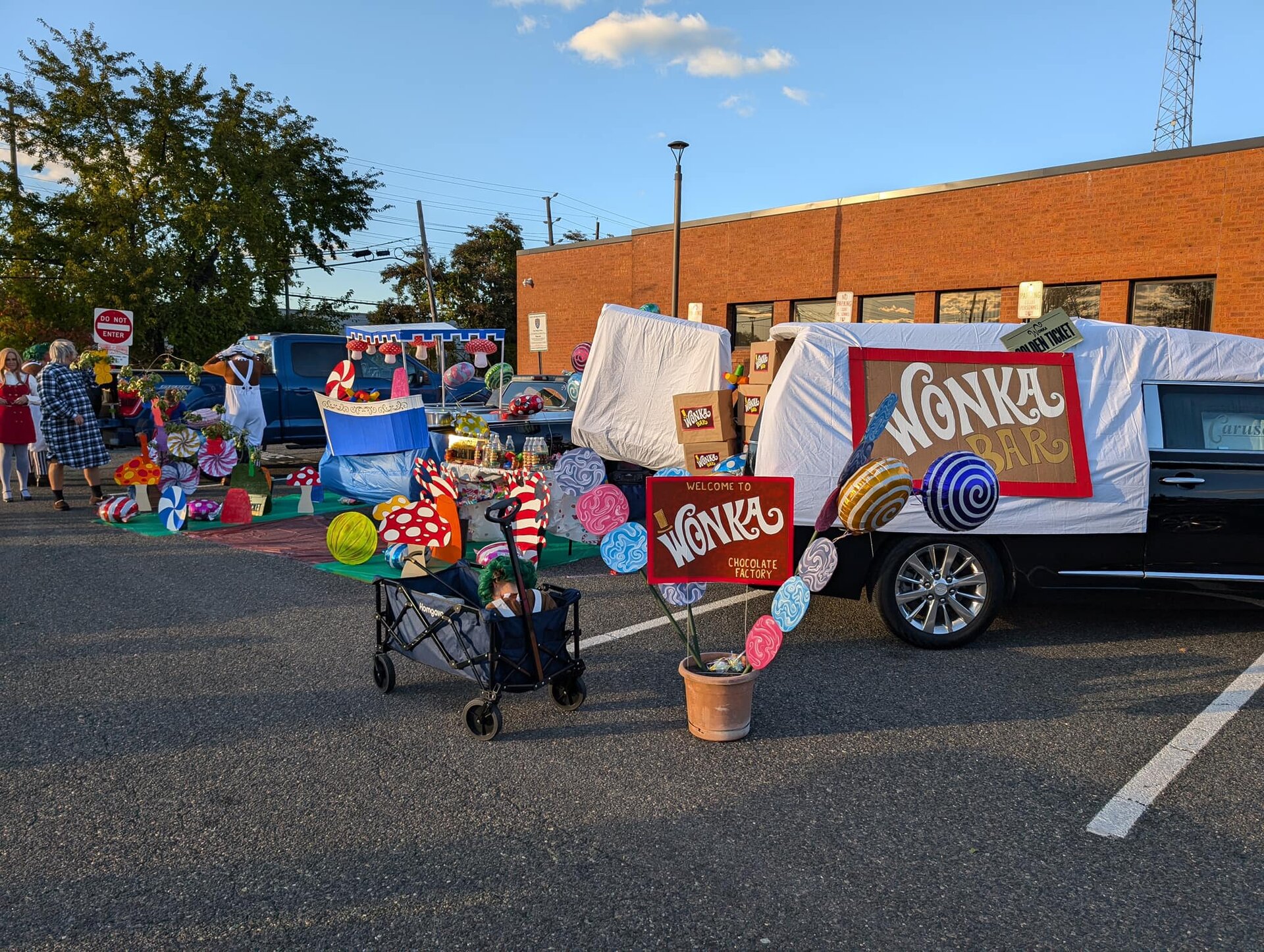 Last night, we had an amazing time at the 3rd Annual Pennsauken Township Police Department Trunk or Treat! Our theme this year brought families straight into the whimsical world of the Wonka Chocolate Factory—complete with golden tickets, a chocolate river, fizzy lifting drinks, and even a few Oompa Loompas.